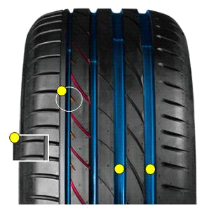 VS5采用全新的高剛性花紋設計,非對稱的優(yōu)化設計,科學設計的小切角可以快速破開水膜,具有增強排水性的作用,三寬一窄的主溝