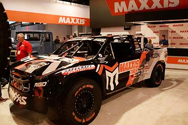 MAXXIS于SEMA展中共設立了“戶外”與“室內”兩種不同展間,這兩大展間各塑造出不同面向之氛圍。戶外展間以多部曾參加Off-road賽事之車輛,道出MAXXIS于該領域之堅強實力;然而室內則陳列了針對顧客不同訴求而設計之主力商品,展現出MAXXIS之研發能力與產品性能。眾多展臺中,瑪吉斯展臺設計最為酷炫且最大,在眾多輪帶品牌中,橘白色的標志十分醒目。展上瑪吉斯主推MT越野輪帶,讓許多“暴力改裝”的愛好者眼前一亮。